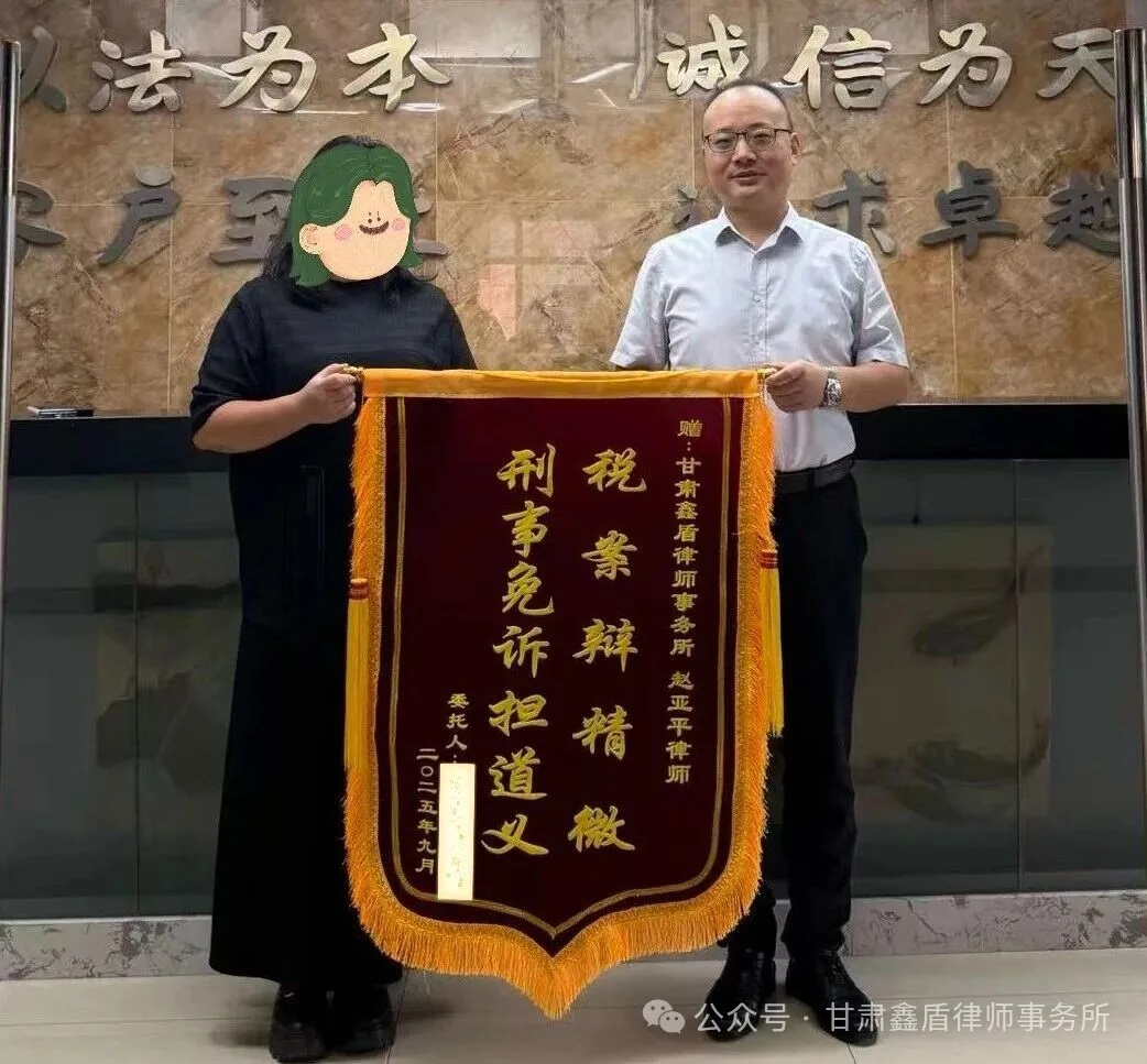 2025年9月15日,我所赵亚平律师收到某虚开发票案件当事人亲属赠送的锦旗,上书“税案辩精微 刑事免诉担道义”。这是对律师专业能力与执业精神的高度认可,也是对依法辩护成果的真挚感谢。