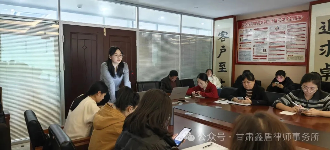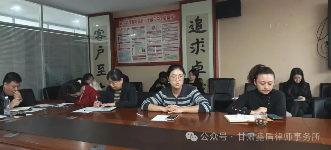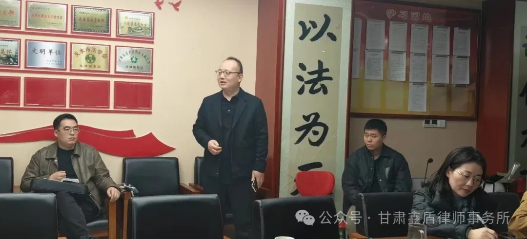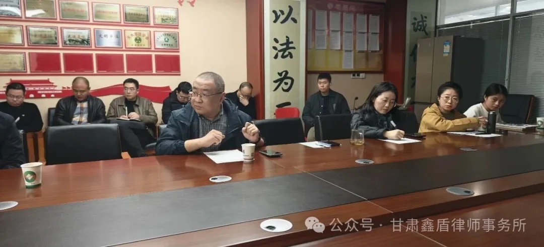 此次月例会既是总结回顾、也是再出发的号角。甘肃鑫盾律师事务所将继续以稳健的步伐推进各项改革与创新,积极提升法律服务质量,强化品牌建设,凝聚团队力量,努力打造一支政治坚定、业务精湛、作风优良的律师队伍,为推进法治建设贡献鑫盾力量。