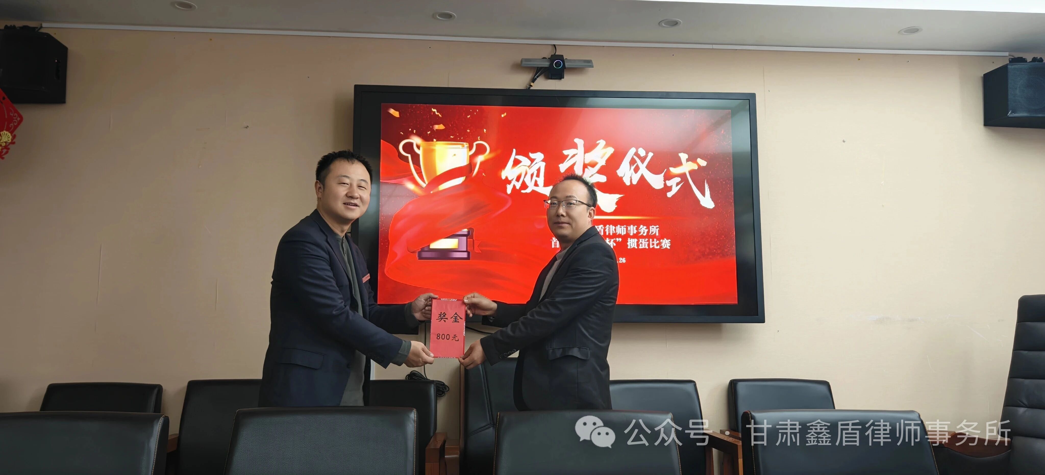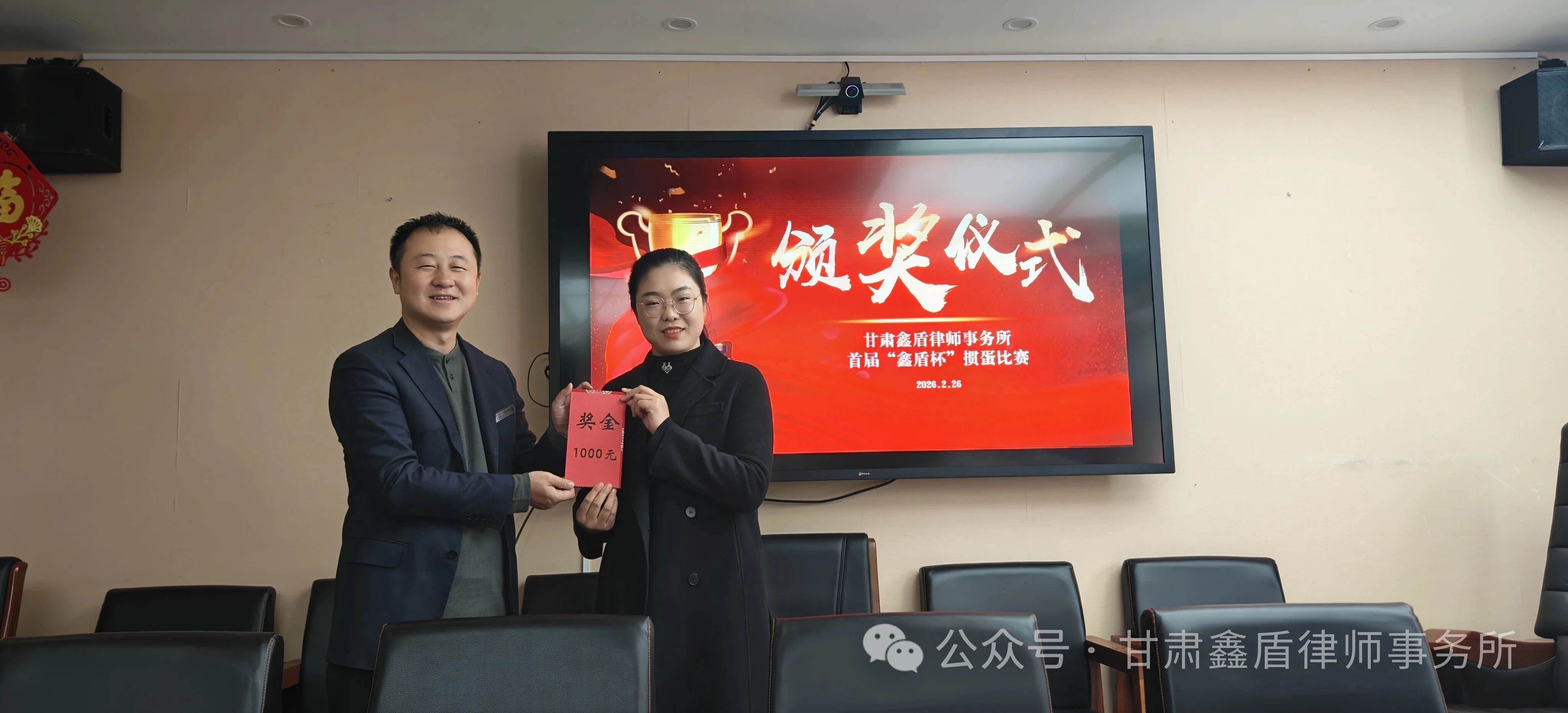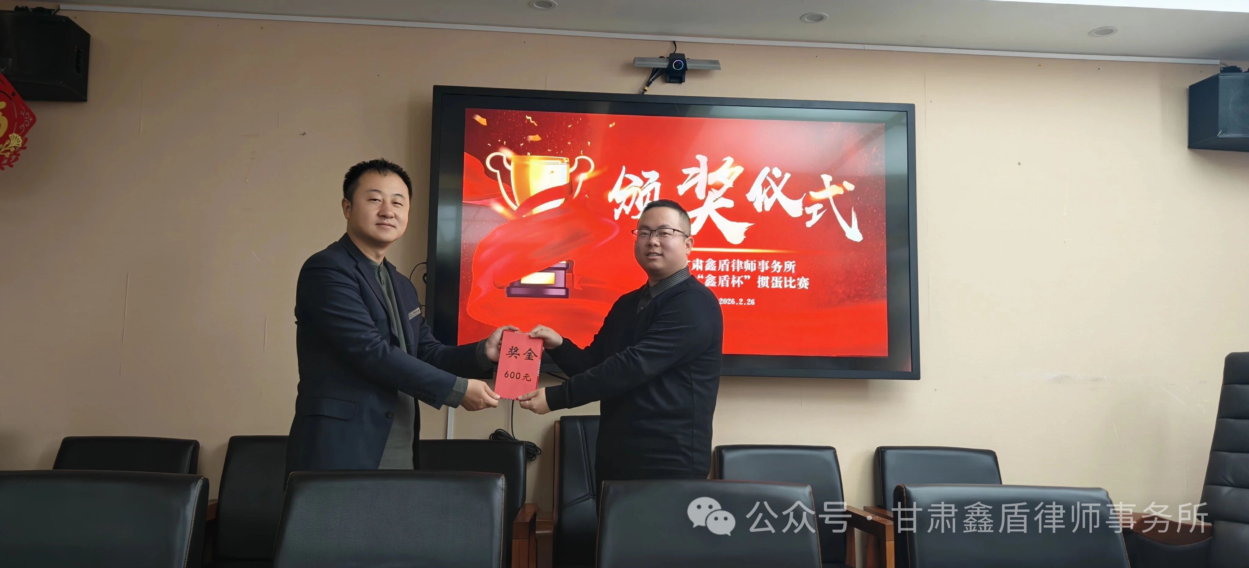 2026年2月25日下午,甘肃鑫盾律师事务所成功举办首届“鑫盾杯”惯蛋比赛。本次比赛共有14人报名参加,通过现场抽签方式两人一组,组成7支队伍同场竞技,气氛热烈,秩序井然。
