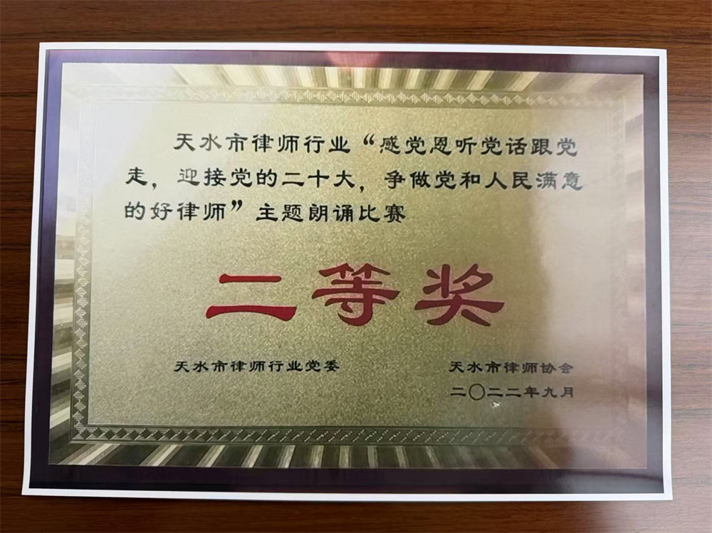 天水市律师行业“感党恩听党话跟党走,迎接党的二十大,争做党和人民满意的好律师”主题朗诵比赛二等奖